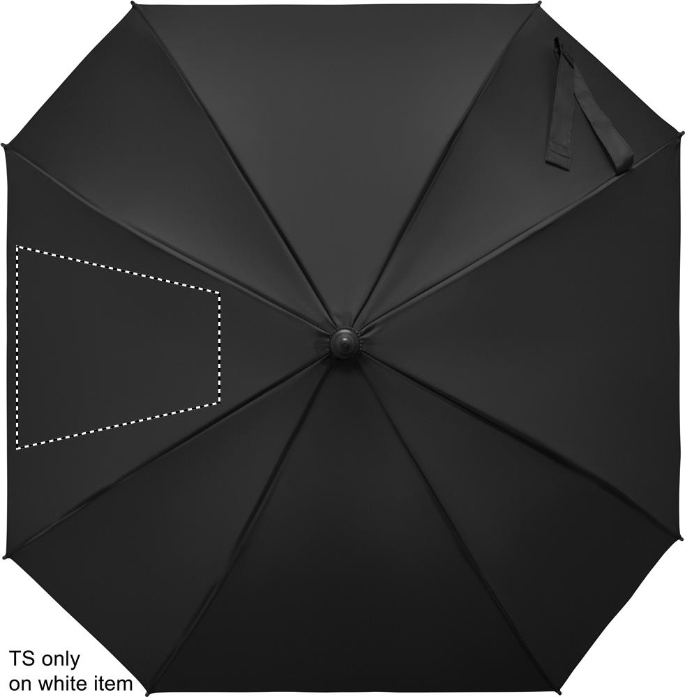 23'' Regenschirm in quadratischer Form aus 190T Pongee Polyester. Windbeständig. Gestell und Schienen aus Fiberglas. Griff aus gummiertem ABS. Automatische Öffnung.