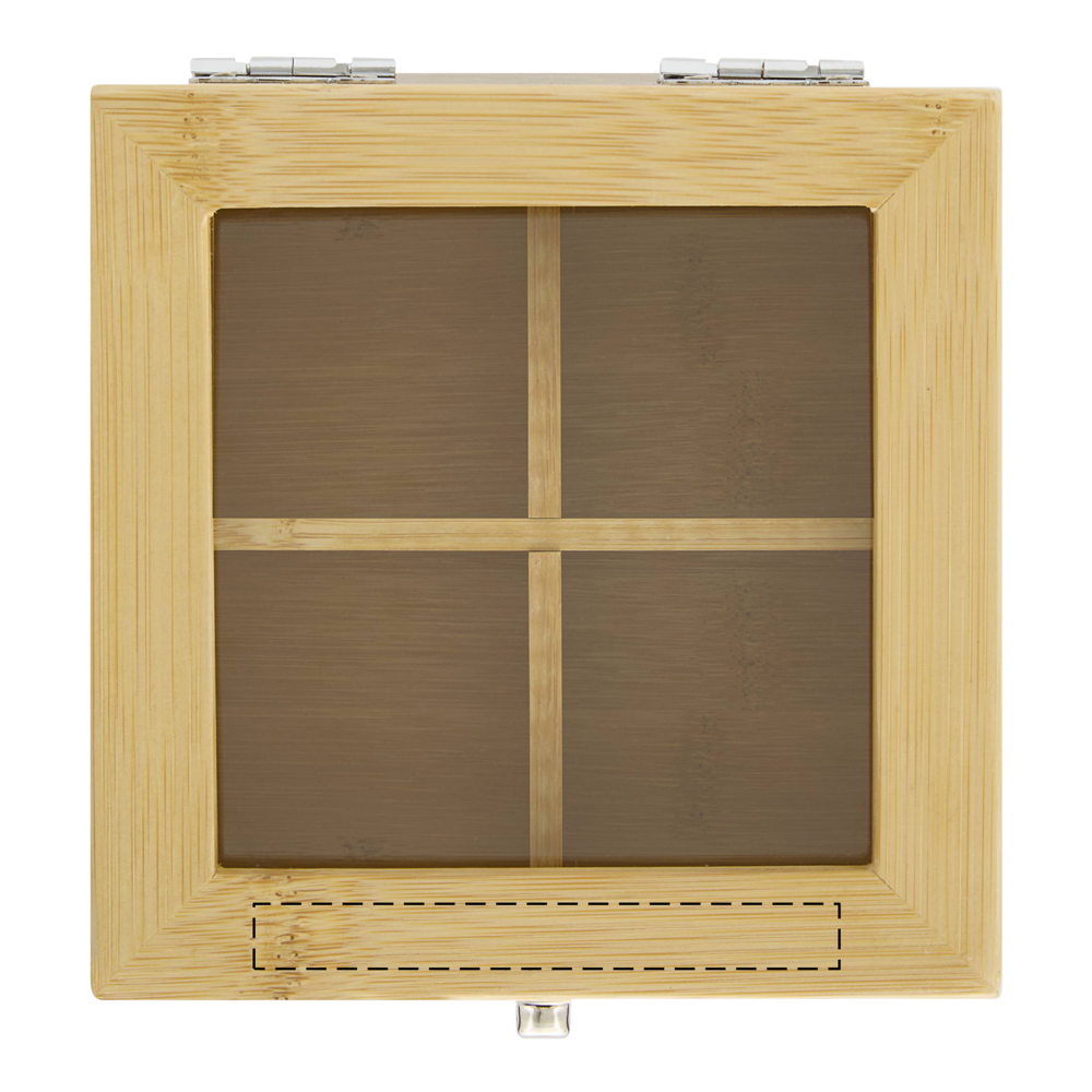 Teebox ASSORTMENT: mit 4 getrennten Fächern zum Befüllen mit Teebeuteln, mit Sichtfenster aus Glas im Deckel und Schnappverschluss, aus Bambus, in Box
