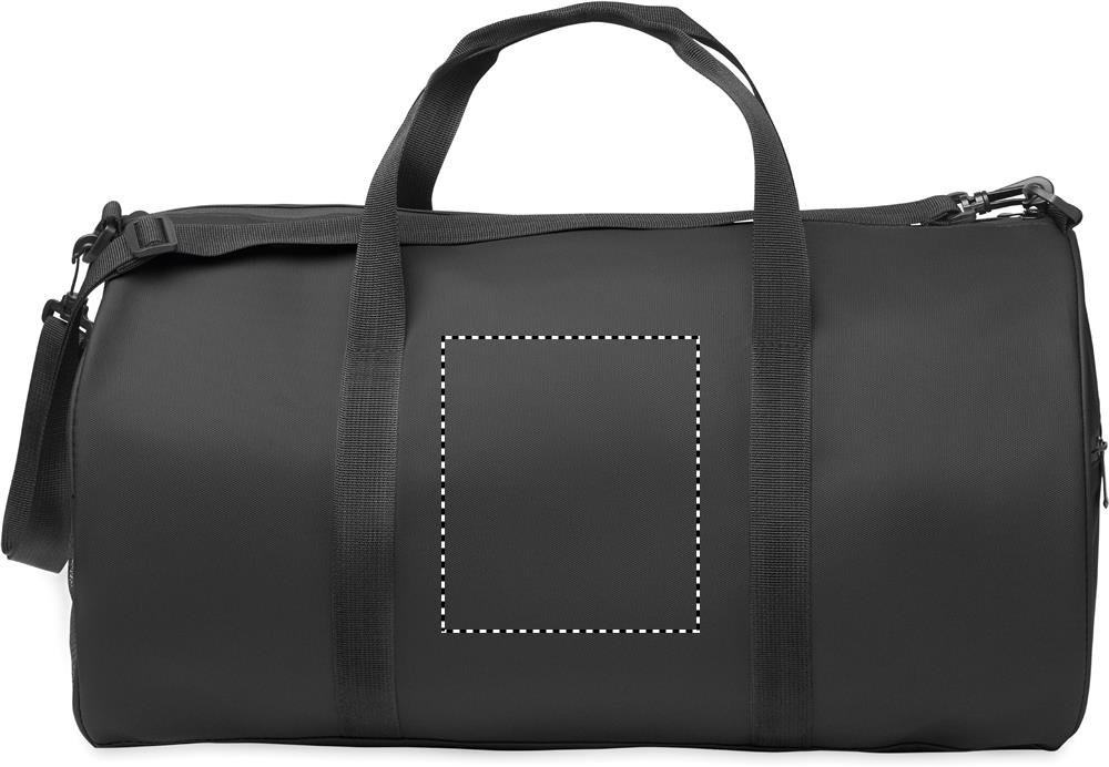 Sport- oder Reisetasche aus 600D RPET Polyester mit PU-Beschichtung. Fronttasche mit Reißverschluss. Innenfutter aus 210D RPET-Polyester. Seitenfach mit Reißverschluss, seitliches Netzfach. Reißverschlusstasche innen.