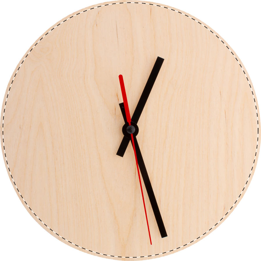 Individuelle, runde Wanduhr aus Birkensperrholz mit individueller Bedruckung. Exkl. Batterie (1x AA). Mindestmenge: 50 Stk.