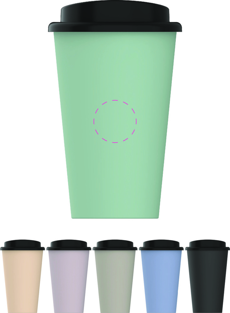 Für den Kaffee unterwegs. Praktischer To-Go-Becher aus doppelwandigem Kunststoff inkl. Deckel mit Trinköffnung. Der Deckel ist verschraubbar und hält somit besonders gut auf dem Becher. Aus Bio-Kunststoff gefertigt und in vielen wunderschönen Natur-Farben erhältlich. Füllmenge: 0,35 Liter.
