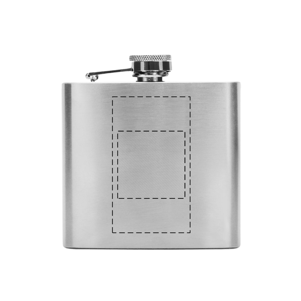 Edelstahl-Flachmann-Set COWBOY, 4-teilig: bestehend aus Flachmann mit Schraubverschluss (Füllmenge ca. 150 ml), Trichter und 2 kleinen Trinkbechern, in Box