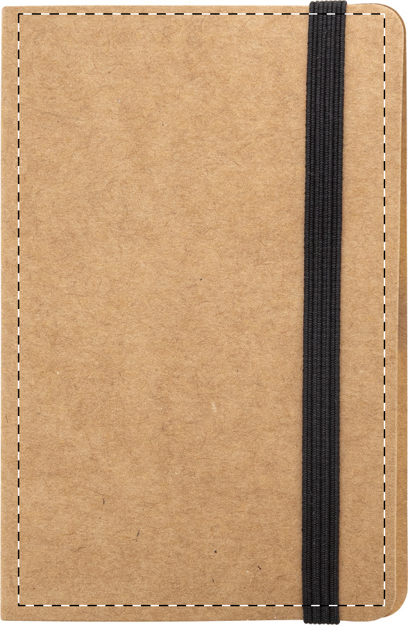 Kartenhalter aus Kraftpapier mit Haftnotizen aus Recyclingpapier und elastischem Verschlussband. Inklusive 25 Blatt gelber Haftnotizen und 125 Lesezeichen (in 5 Farben).