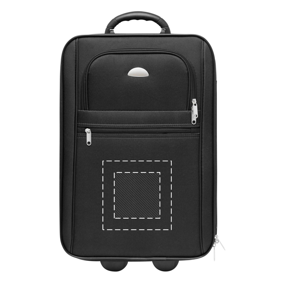 Trolley-Bordcase DUBLIN: gefütterter Packraum mit Packgurten und extra Reißverschluss-Fach, 2 Reißverschluss-Vortaschen, arretierbares und versenkbares Trolleygestell, Tragegriff, 2 leichtlaufende Skaterrollen, Zahlenkombinationsschloss, Adressfach auf der Rückseite, auswechselbares Metalllogo, boarding size für Low-Budget-Fluglinien geeignet