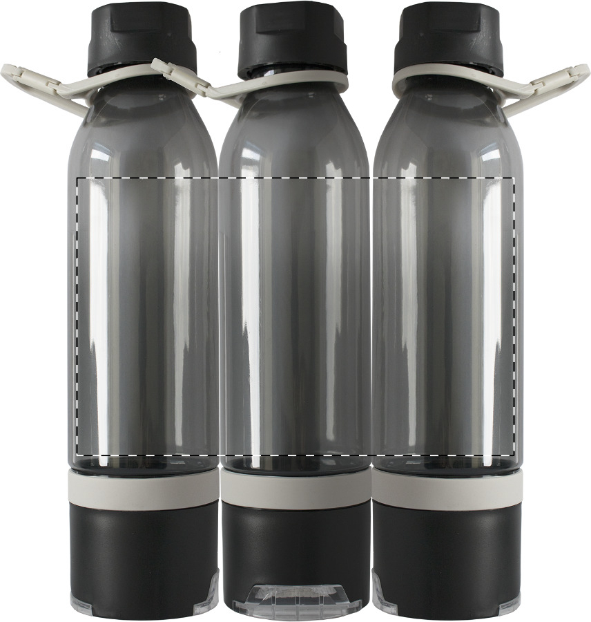 Multifunktions-Sportflasche aus Kunststoff mit Kühltuch (390 g/m²) im Bodenfach und ausziehbarem Handyhalter. Im Geschenkkarton. 650 ml. Nicht für kohlensäurehaltige Getränke geeignet.