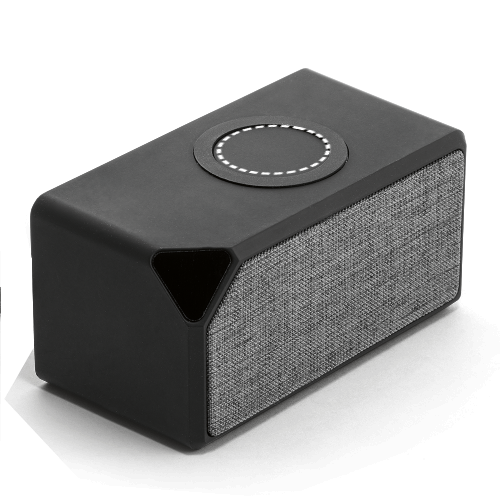 Tragbarer Lautsprecher mit kabelloser Ladefunktion auf der Oberseite. Ein praktisches 2-in-1-Gerät, das Unterhaltung und Funktionalität vereint.Material: ABS, StoffKabellose Übertragung: BT v5'0Kabellose Ladeleistung: 5 WKapazität: 300 mAhUngefähre Autonomie: 2 hUngefähre Ladezeit: 1 h 30 mEingang: microUSB (10 W) , 3, 5 mmFrequenzgang: 20 Hz – 20 kHzSignal-Rausch-Verhältnis: > 90 dBEmpfindlichkeit: 85 ±3 dBImpedanz: 4 ΩLautsprecherdurchmesser: Ø 40 mmSchallleistung: 3 WIm Lieferumfang enthalten: USB-A-/Micro-USB-Kabel, 3.5-mm-AudiokabelLieferung: schwarze Geschenkschachtel 108 x 56 x 54 mm