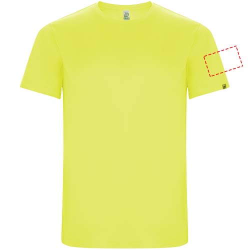 Funktions-T-Shirt aus recyceltem Polyester CONTROL DRY. Rundhalsausschnitt mit farblich abgesetzten Nähten. ECO-Logo-Etikett am Ärmel. Verpackung aus Recyclingmaterial. Herausnehmbares ECO-Etikett. Verpackung aus Recyclingmaterial. Technisches Gewebe. Das Modell ist 115 cm groß und trägt Größe 5/6.