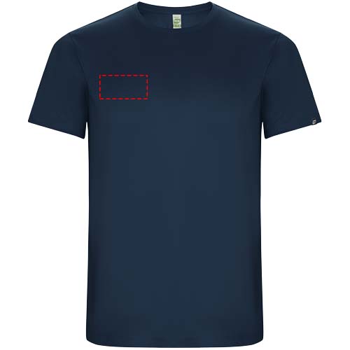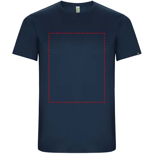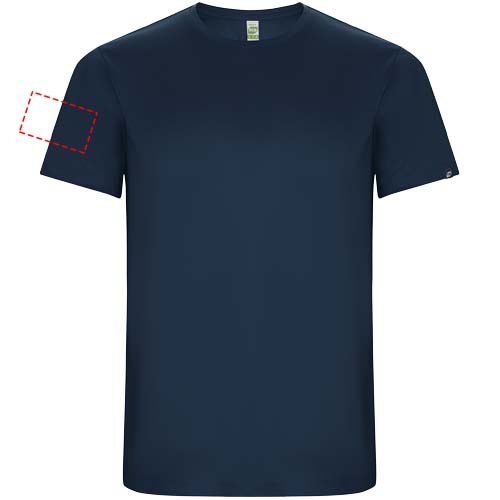 Funktions-T-Shirt aus recyceltem Polyester CONTROL DRY. Rundhalsausschnitt mit farblich abgesetzten Nähten. ECO-Logo-Etikett am Ärmel. Verpackung aus Recyclingmaterial. Herausnehmbares ECO-Etikett. Verpackung aus Recyclingmaterial. Technisches Gewebe. Das Modell ist 115 cm groß und trägt Größe 5/6.