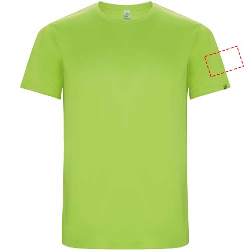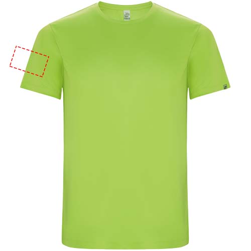 Funktions-T-Shirt aus recyceltem Polyester CONTROL DRY. Rundhalsausschnitt mit farblich abgesetzten Nähten. ECO-Logo-Etikett am Ärmel. Verpackung aus Recyclingmaterial. Herausnehmbares ECO-Etikett. Verpackung aus Recyclingmaterial. Technisches Gewebe. Das Modell ist 115 cm groß und trägt Größe 5/6.