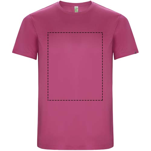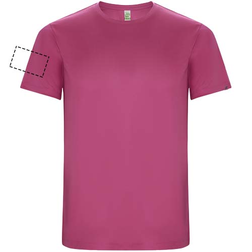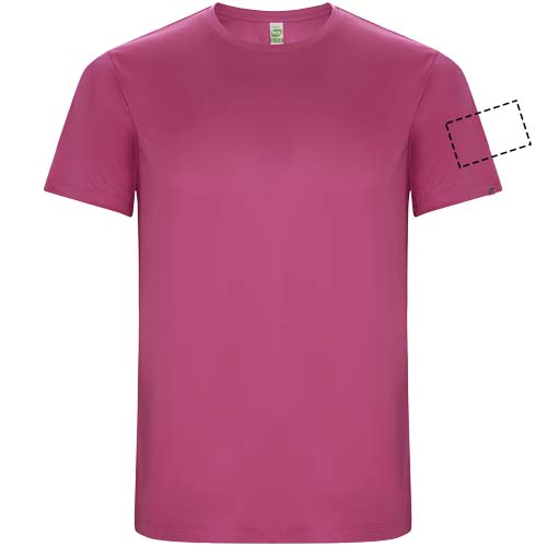 Funktions-T-Shirt aus recyceltem Polyester CONTROL DRY. Rundhalsausschnitt mit farblich abgesetzten Nähten. ECO-Logo-Etikett am Ärmel. Verpackung aus Recyclingmaterial. Herausnehmbares ECO-Etikett. Verpackung aus Recyclingmaterial. Technisches Gewebe. Das Modell ist 115 cm groß und trägt Größe 5/6.