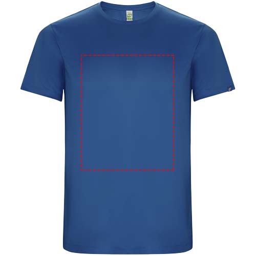 Funktions-T-Shirt aus recyceltem Polyester CONTROL DRY. Rundhalsausschnitt mit farblich abgesetzten Nähten. ECO-Logo-Etikett am Ärmel. Verpackung aus Recyclingmaterial. Herausnehmbares ECO-Etikett. Verpackung aus Recyclingmaterial. Technisches Gewebe. Das Modell ist 115 cm groß und trägt Größe 5/6.