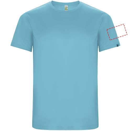 Funktions-T-Shirt aus recyceltem Polyester CONTROL DRY. Rundhalsausschnitt mit farblich abgesetzten Nähten. ECO-Logo-Etikett am Ärmel. Verpackung aus Recyclingmaterial. Herausnehmbares ECO-Etikett. Verpackung aus Recyclingmaterial. Technisches Gewebe. Das Modell ist 115 cm groß und trägt Größe 5/6.