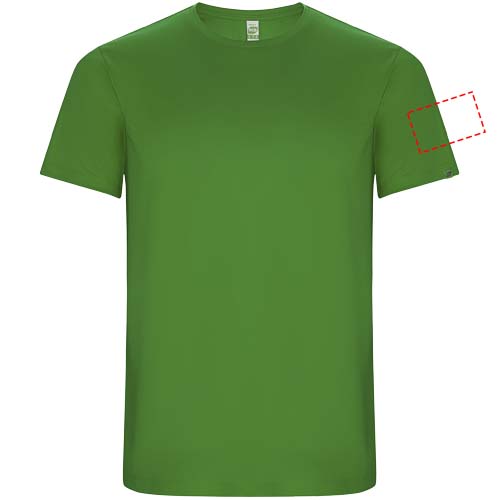 Funktions-T-Shirt aus recyceltem Polyester CONTROL DRY. Rundhalsausschnitt mit farblich abgesetzten Nähten. ECO-Logo-Etikett am Ärmel. Verpackung aus Recyclingmaterial. Herausnehmbares ECO-Etikett. Verpackung aus Recyclingmaterial. Technisches Gewebe. Das Modell ist 115 cm groß und trägt Größe 5/6.