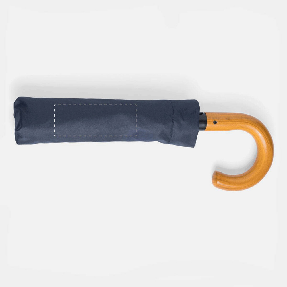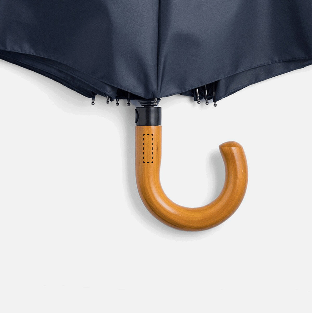 Automatik-Herrentaschenschirm LORD: 3-teiliger Metallstock, Metall- / Fiberglasspeichen, Holz-Rundhakengriff, Polyester-Pongee-Bespannung und -Hülle, mit stark wasserabweisender Spezialbeschichtung, Schließband mit Klettverschluss