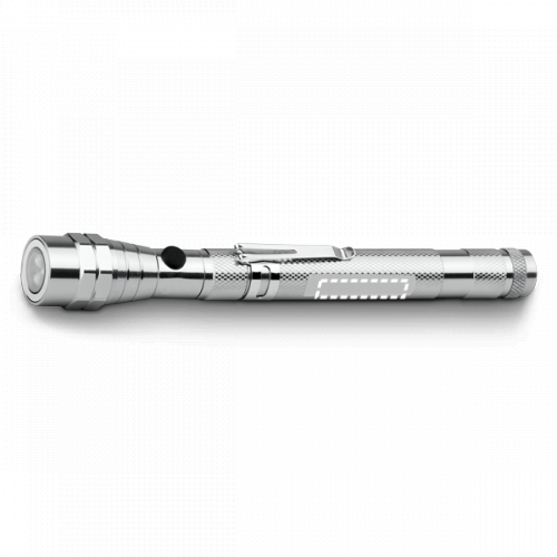 LED-Taschenlampe aus Metall, teleskopisch mit 3 LEDs (13 Lumen), einem Magnet und einem Clip. Inklusive 4 LR44 Lithium-Batterien. Geliefert in einer Schachtel. ø22 x 175 mm | Schachtel: 25 x 25 x 174 mm