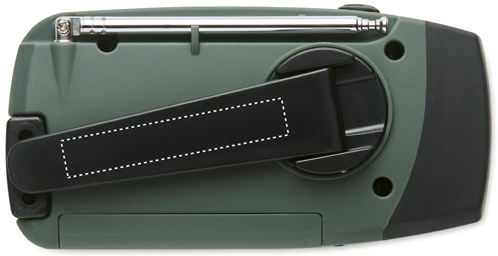 Tragbares AM/FM-Radio mit LED-Taschenlampe (2 Einstellungen) und 1200mAh Powerbank zum Notfall-Aufladen. Aufladen per Solarladefunktion und Handkurbel-Dynamo. ABS.
