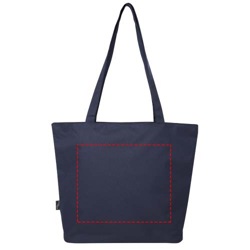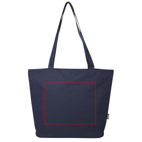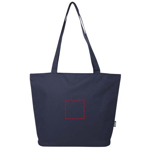 Die Panama GRS-recycelte Tragetasche mit Reißverschluss aus wasserabweisendem 600D RPET ist eine perfekte Mehrzwecktasche für den Besuch einer Veranstaltung, für den Strand oder für den Lebensmitteleinkauf. Sie verfügt über ein Hauptfach mit Reißverschluss und eine Innentasche mit Reißverschluss, die groß genug ist, um Ihr Telefon und andere wertvolle Gegenstände zu verstauen. Die Griffe sind 34 cm lang, sodass die Tasche leicht über der Schulter getragen werden kann. Belastbarkeit bis zu 10 kg. PVC frei.