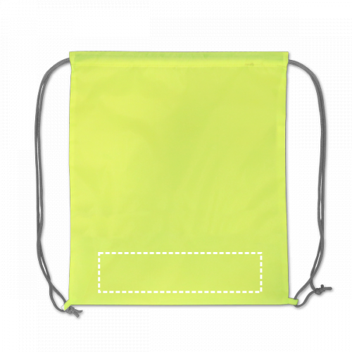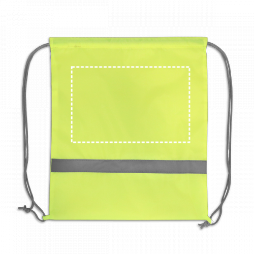 Turnbeutel aus 210D mit Reflektorelementen und Kordelzug zum Schließen. Dieser Artikel ist ein Werbeartikel. 350 x 400 mm