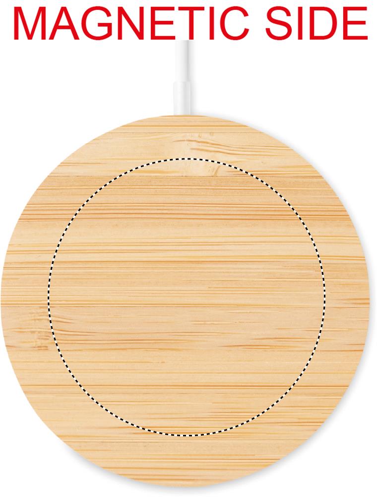 Induktives, magnetisches Ladegerät aus Bambus. Ausgang: DC 9V/1.1A (10W) für schnelles Aufladen. Inkl. magnetischem Metallring zur Unterstützung anderer nicht-magnetischer wireless aufladbarer Telefone. Bambus ist ein natürliches Produkt, es kann daher