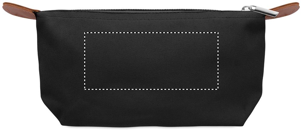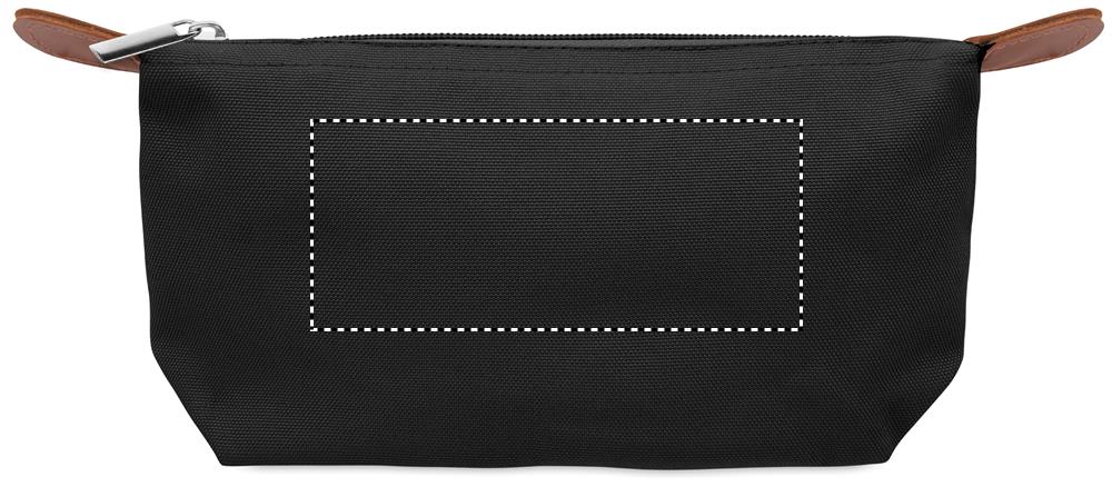 Kosmetiktasche aus 600D RPET-Polyester mit Reißverschluss. Details aus PU.