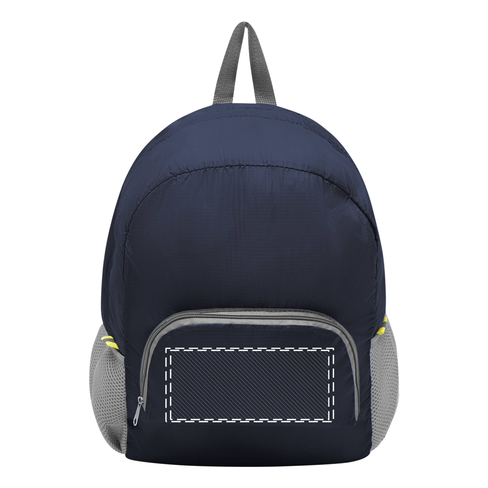 Rucksack VOLUNTEER, faltbar: Reißverschluss-Vorfach mit Trageschlaufe, geräumiges Reißverschluss-Hauptfach, 2 seitliche Netzfächer, 2 Reflektor-Etiketten, Trageschlaufe, verstellbare gepolsterte Schultergurte – lässt sich platzsparend zu einer Mini-Tasche zusammenfalten und passt perfekt in die Handtasche